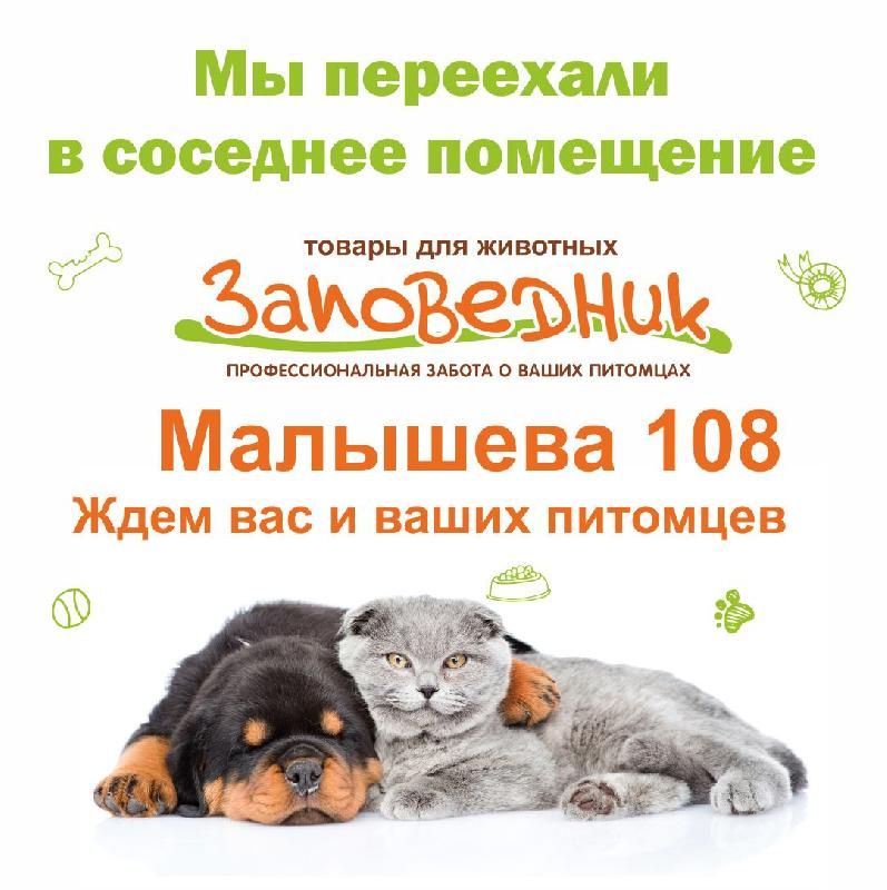 Друзья, рады сообщить Вам, что наш магазин на Малышева 108 стал больше. Мы переехали в соседнее помещение. Теперь еще больше ассортимента для Ваших питомцев!